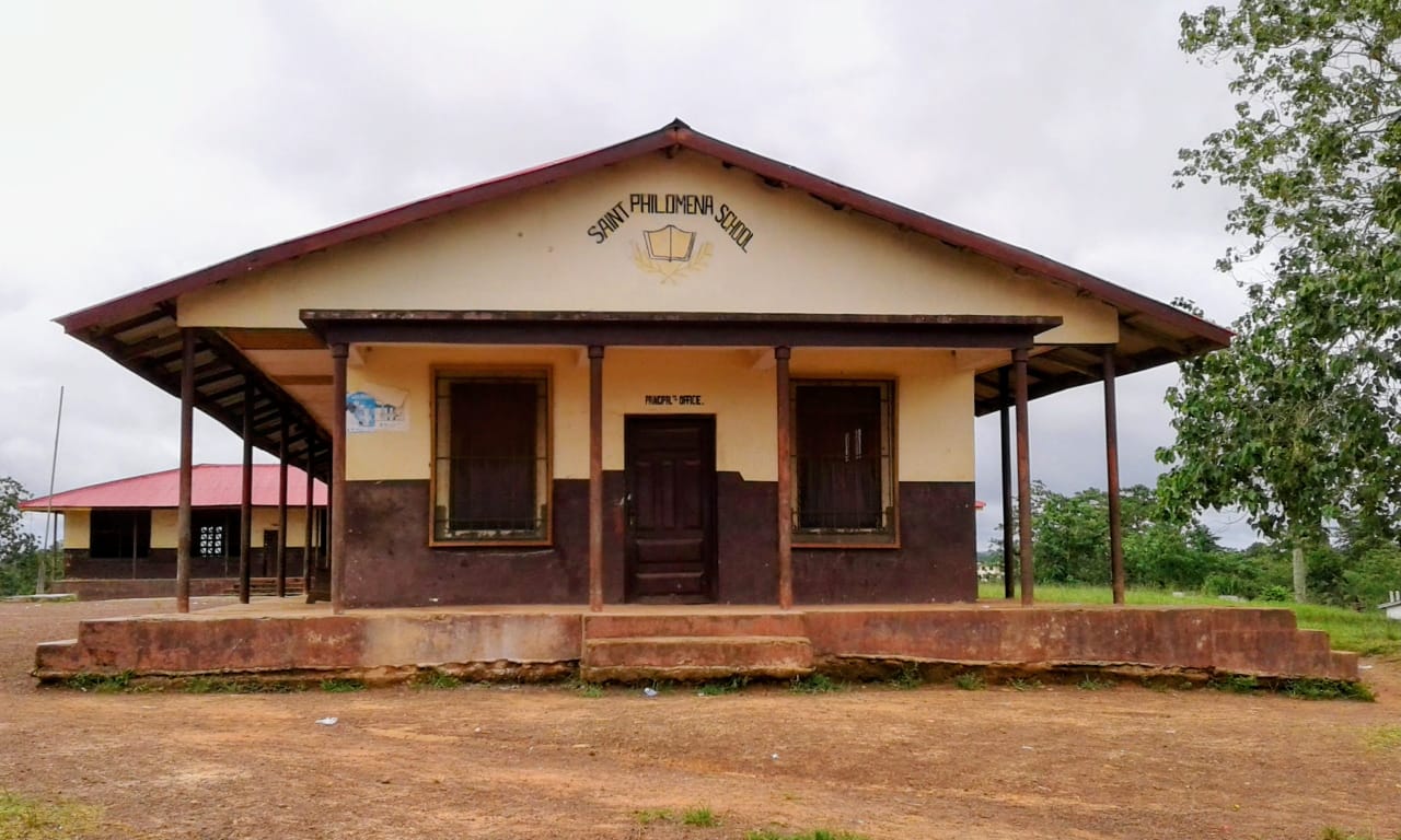 Saint Philomena School officially started in 1958, with classes initially held under the trees in the parish compound, each in a mud-block room. The SSNDs also initiated a boarding facility and various other projects to support the school's development.