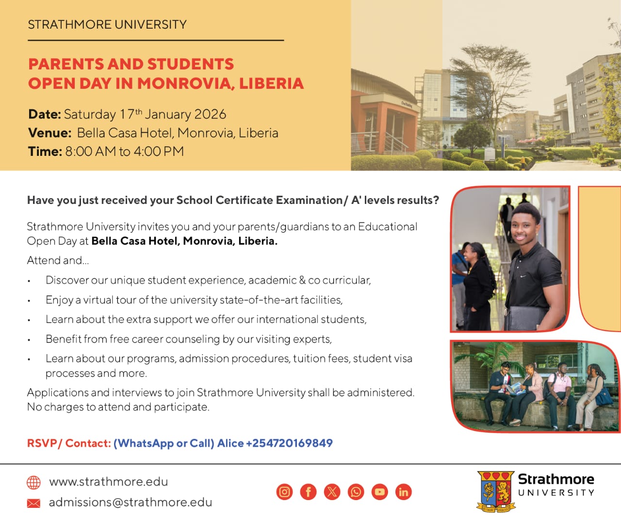 The Catholic Education Secretariat (CES) of the Archdiocese of Monrovia is pleased to inform parents, guardians, and students of an upcoming Strathmore University Parents and Students Open Day to be held in Monrovia, Liberia.